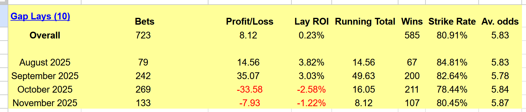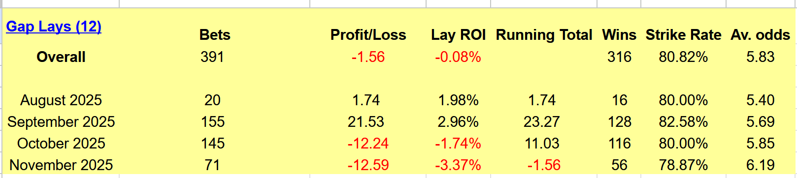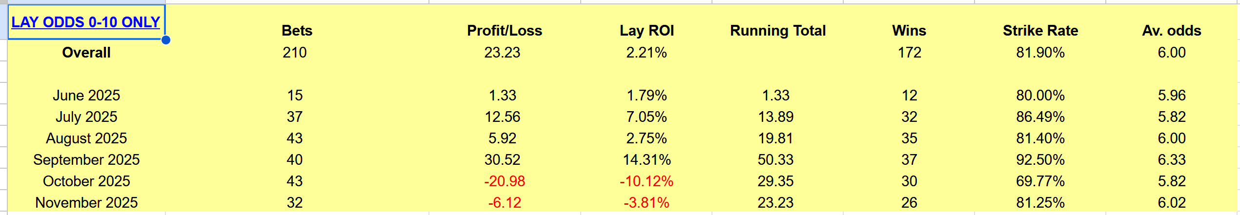 Ai Lays climbs to 19 winners from 22 lays in November, a total of +13.66