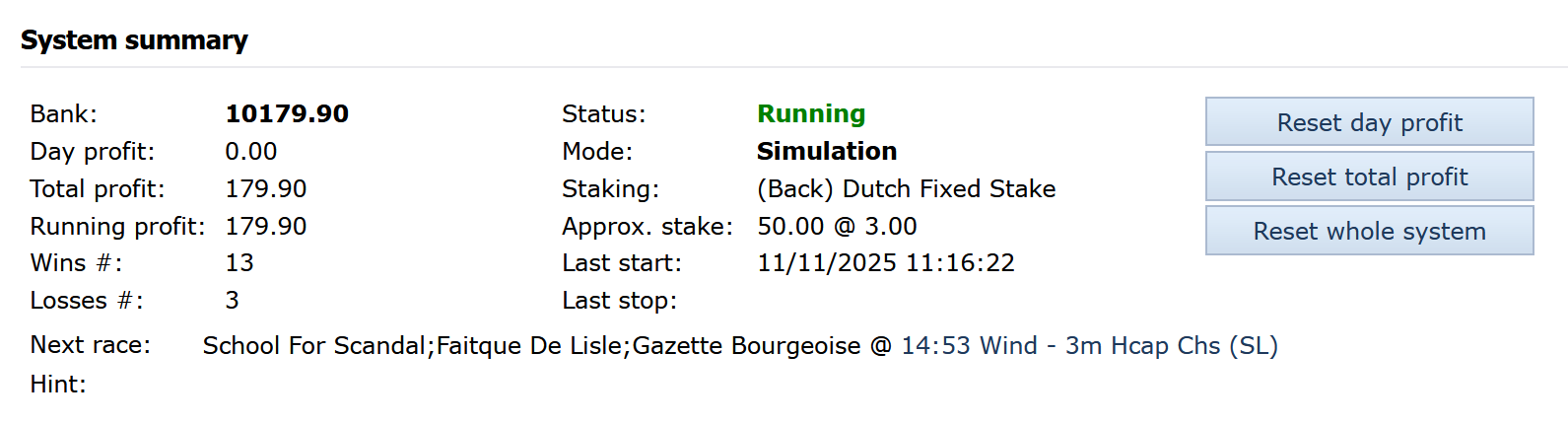And now.. Automation is here for the dutching service (it took a week to edit and add some code). Meaning you can follow these completely hands free.