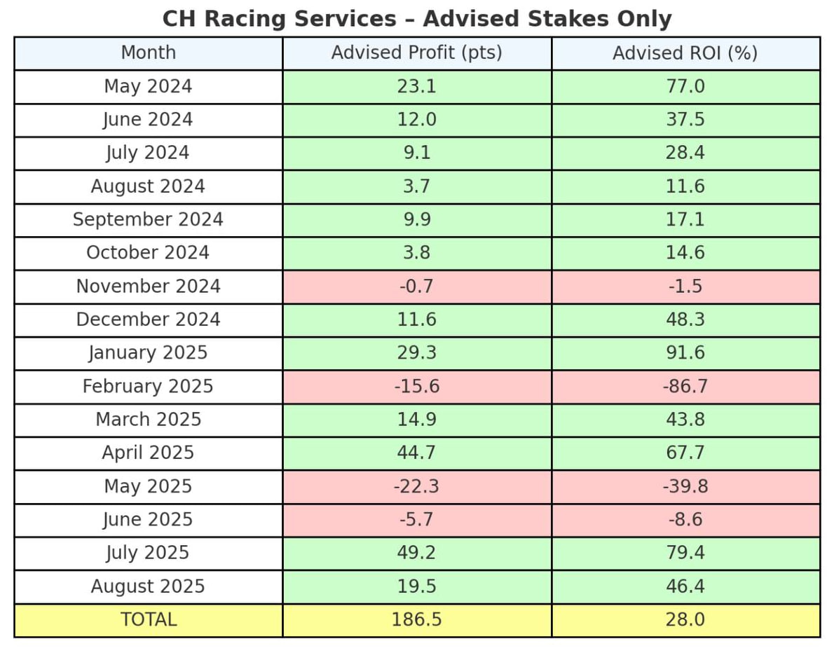 CH Racing - Selections are sent on an evening so you get plenty of time to bet, it's not a bet heavy service like other systems, the focus is on value. £29 per month selections sent via email and telegram.