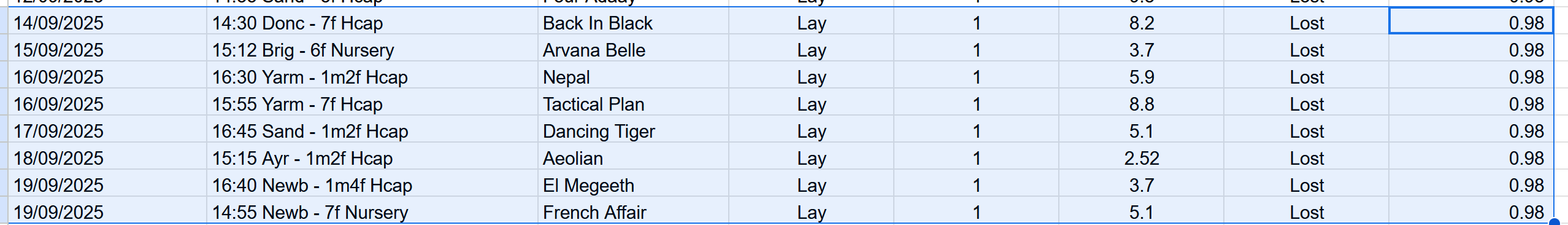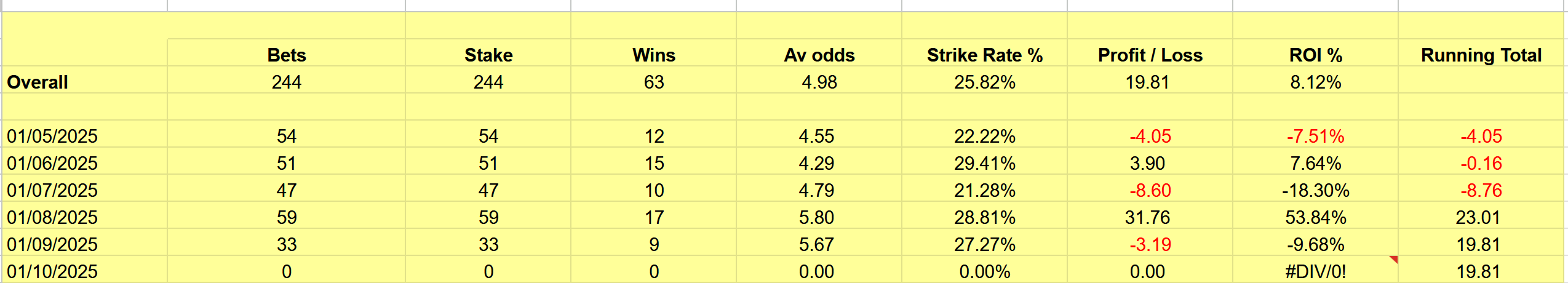 A new trial from an external source, utlising Ai to give confidence scores and take the strongest selection from each course daily.