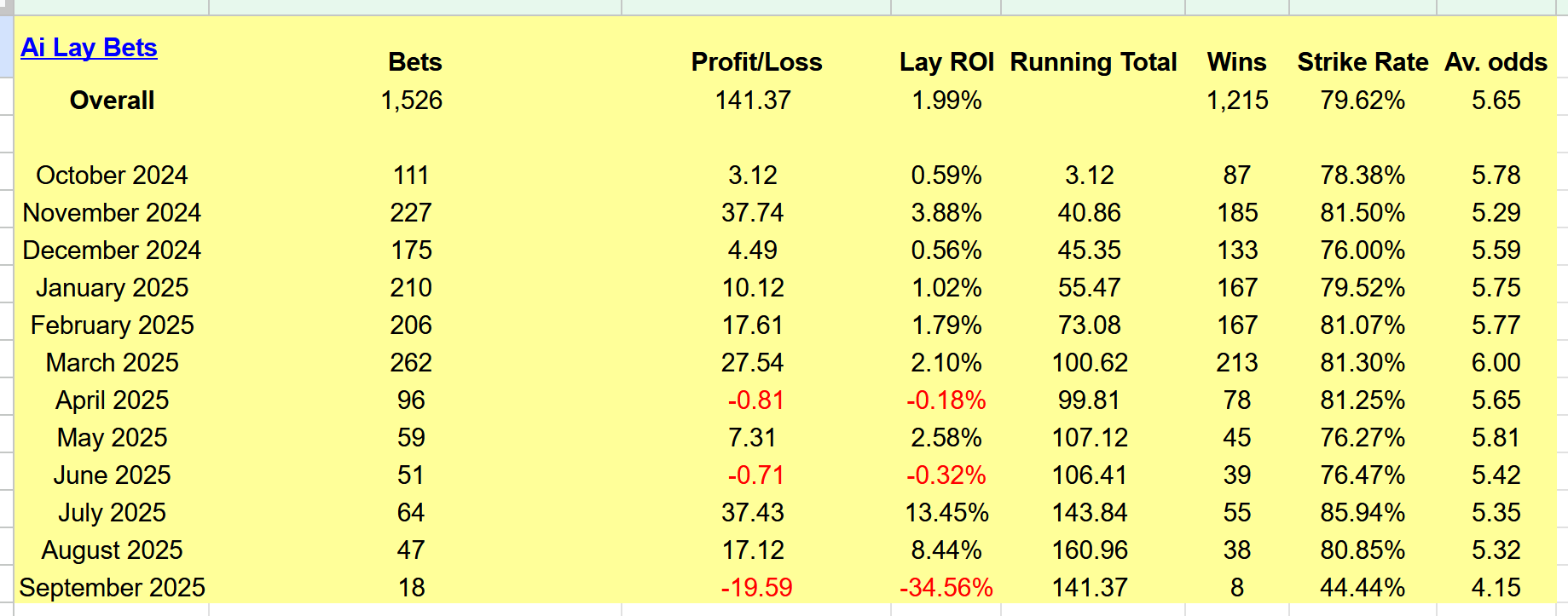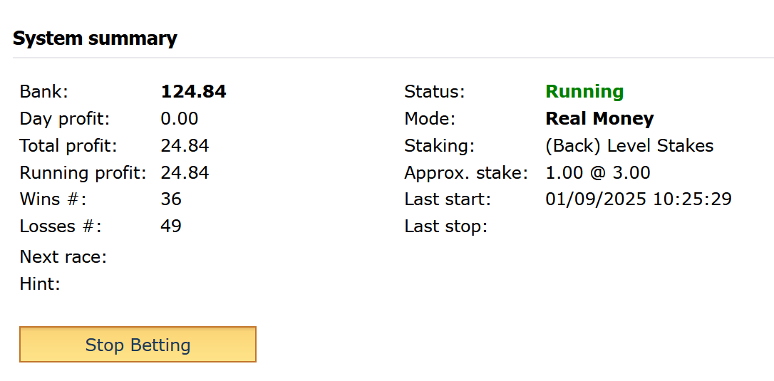 If you're interested in the Ai, it's completely automated to your betfair account, set it up once and you only need to tweak stakes as your bank grows.