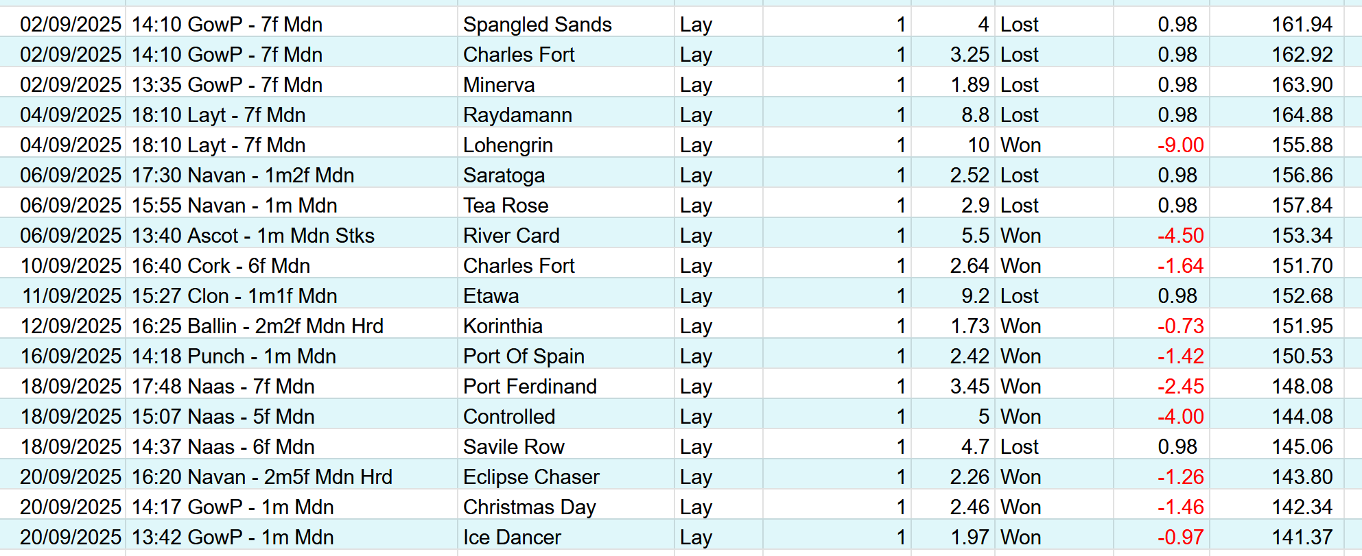 Honestly.. The only bet there that botheres me is Lohengrin being matched at exactly my limit of 10.0 and winning. More than happy to stomach little winners like the rest, those will happen, its the biggie that bothers me.