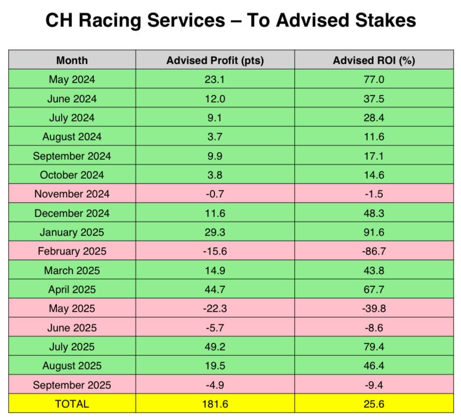 CH Racing - Selections are sent on an evening so you get plenty of time to bet, it's not a bet heavy service like other systems, the focus is on value. £29 per month selections sent via email and telegram.
