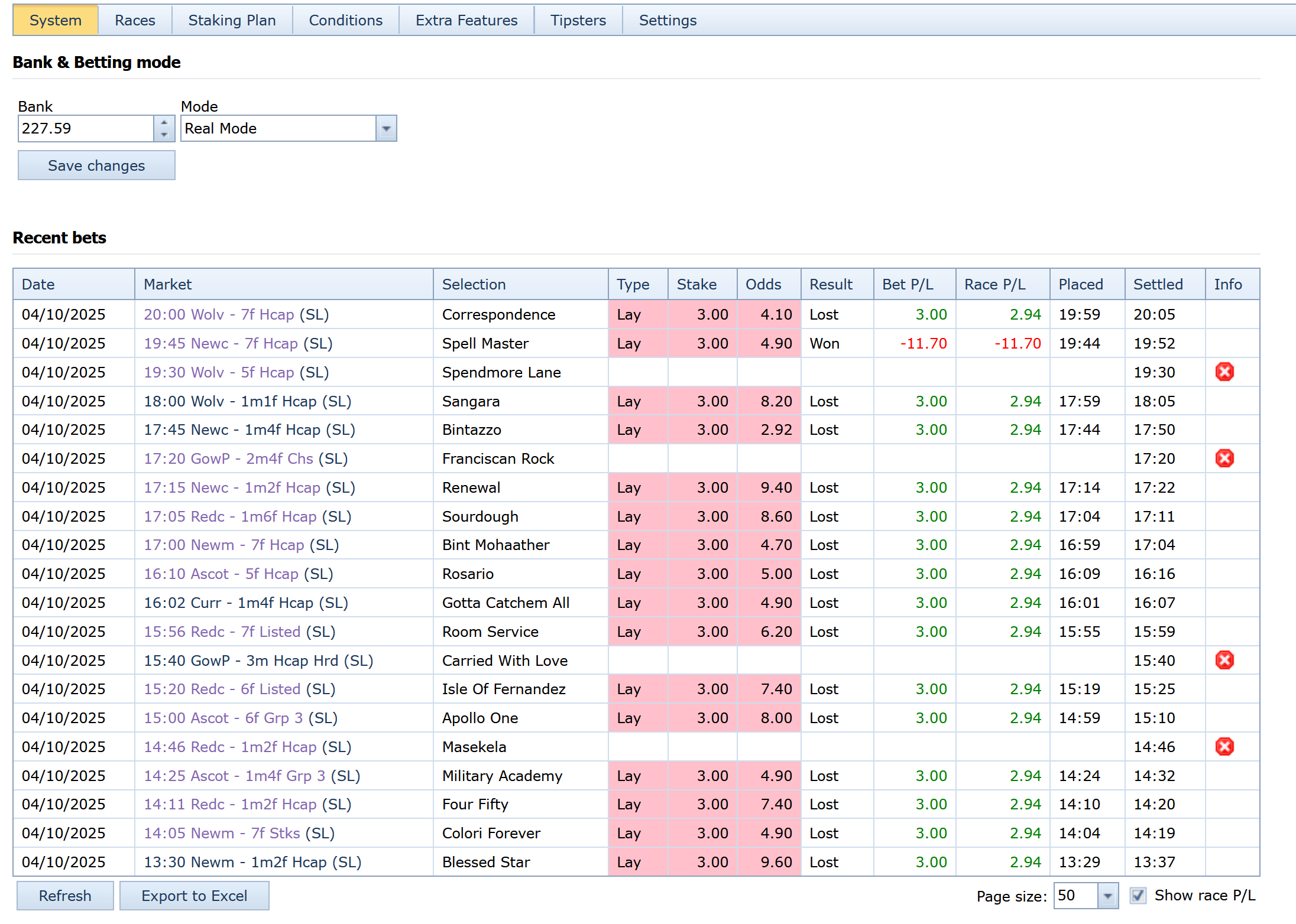 (a 'skill' gap of 10 to rivals), Telegram has 7 & 12 gaps for lays if anyone wants more or less selections, all methods are also available to atuomate as part of xCloudBot Membership until such time i'm confident I have enough data to take paid clients.
