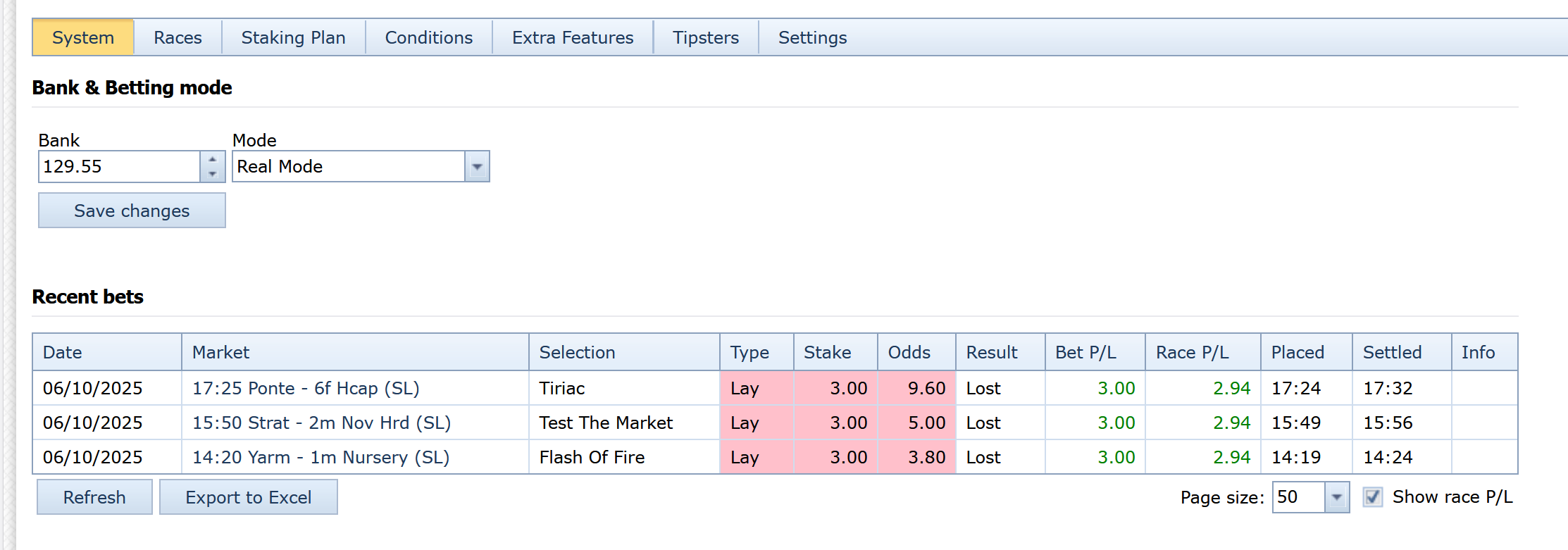 Note: I do not lay over 10.0, bets are fired automatically at 60 seconds pre race and my results are based on this only.