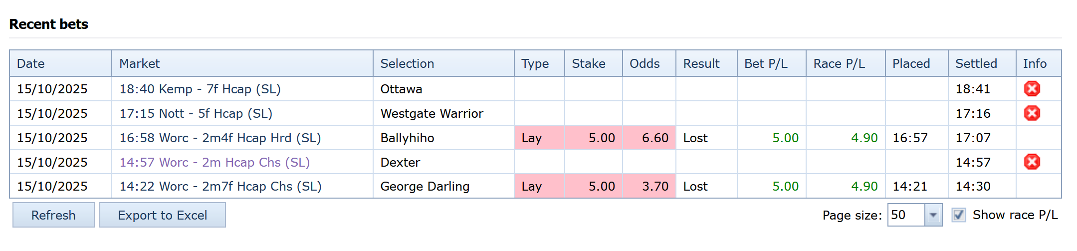Note: I do not lay over 10.0, bets are fired automatically at 60 seconds pre race and my results are based on this only.