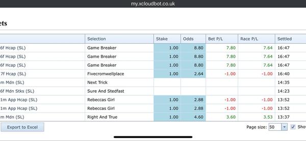 Xcloudbot quietly ticks away like usual with its loyal band of Bot-heads making a steady profit, But this month has seen Morning Line and Lay of the Day help those profits SOAR!