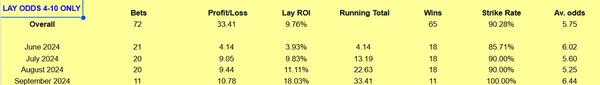 Lay of The Day is another one impressing- +29 33 points profit since June this year the Lay service has been steady and reliable since the service joined us, at an average odds of 5.74 the liability is low and with the odds range between 4-10 the service has maintained incredible