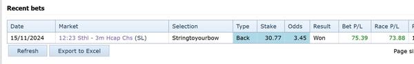 1 bet 1 winner and another winning day for Morning line as Stringtoyourbow was in the winners circle to provide followers with plenty