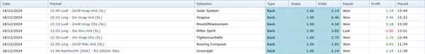 Tips went out again to all for free and WOW they didnt disappoint! Six lovely winners and plenty of BSP Profit once again! +12 to BSP! Nearly 100 points profit overall and +22 for the month! Incredible stuff!