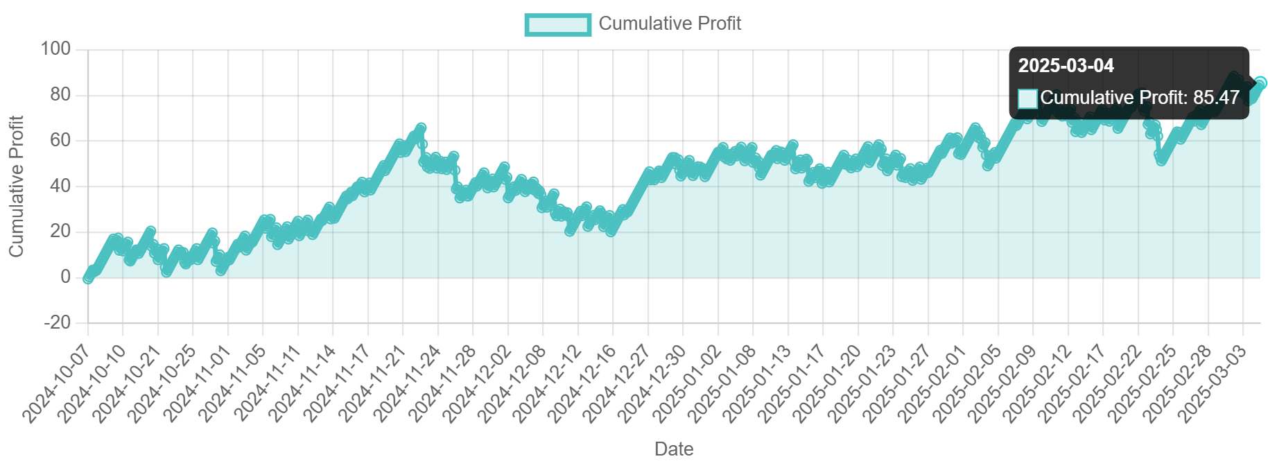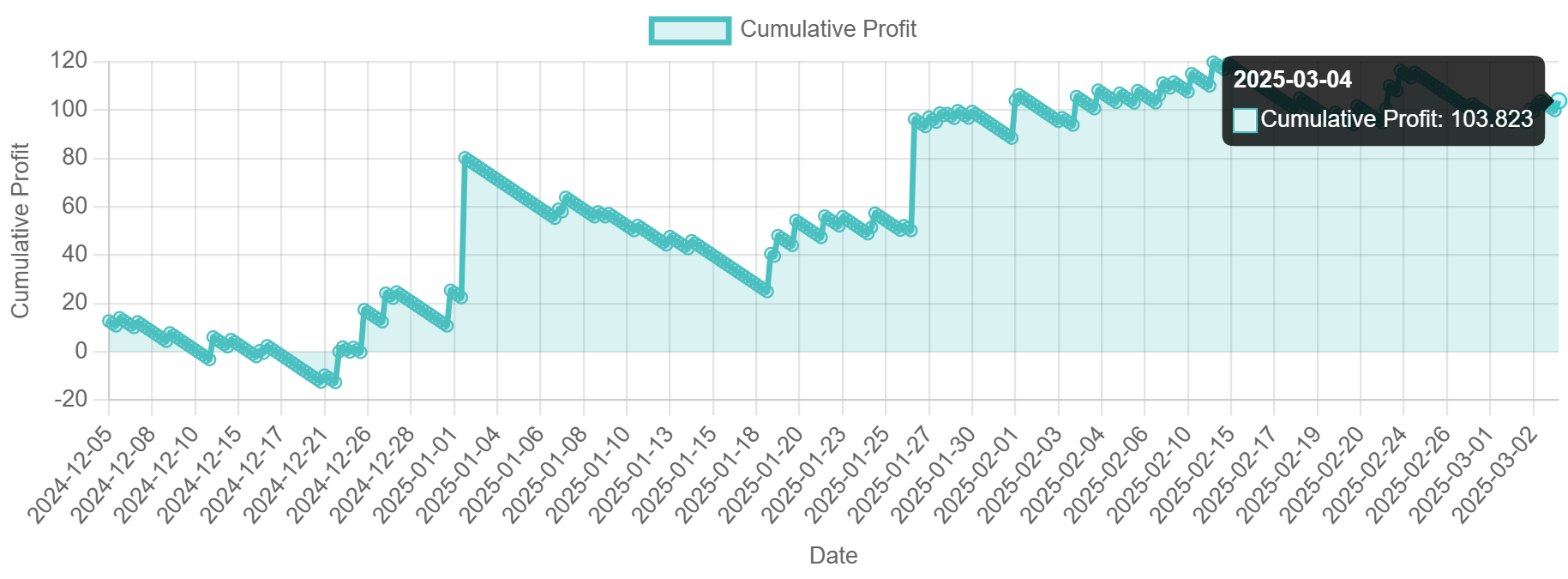 ✅ 397 bets – 62 winners✅ Avg odds: 11.96✅ Strike rate: 15.62%✅ Profit: +99.33 pts✅ ROI: 25.02%