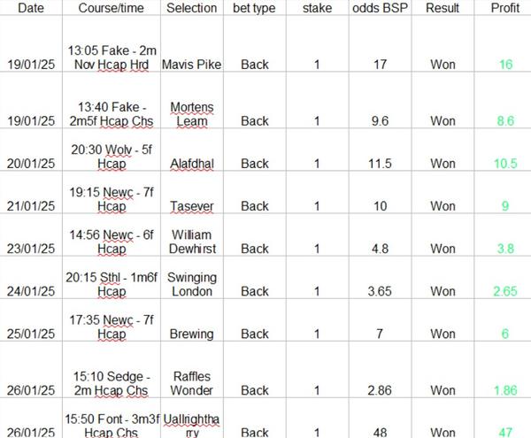 Nine winners over the last week have pushed the service to just under 100 points profit overall and 85 points profit this