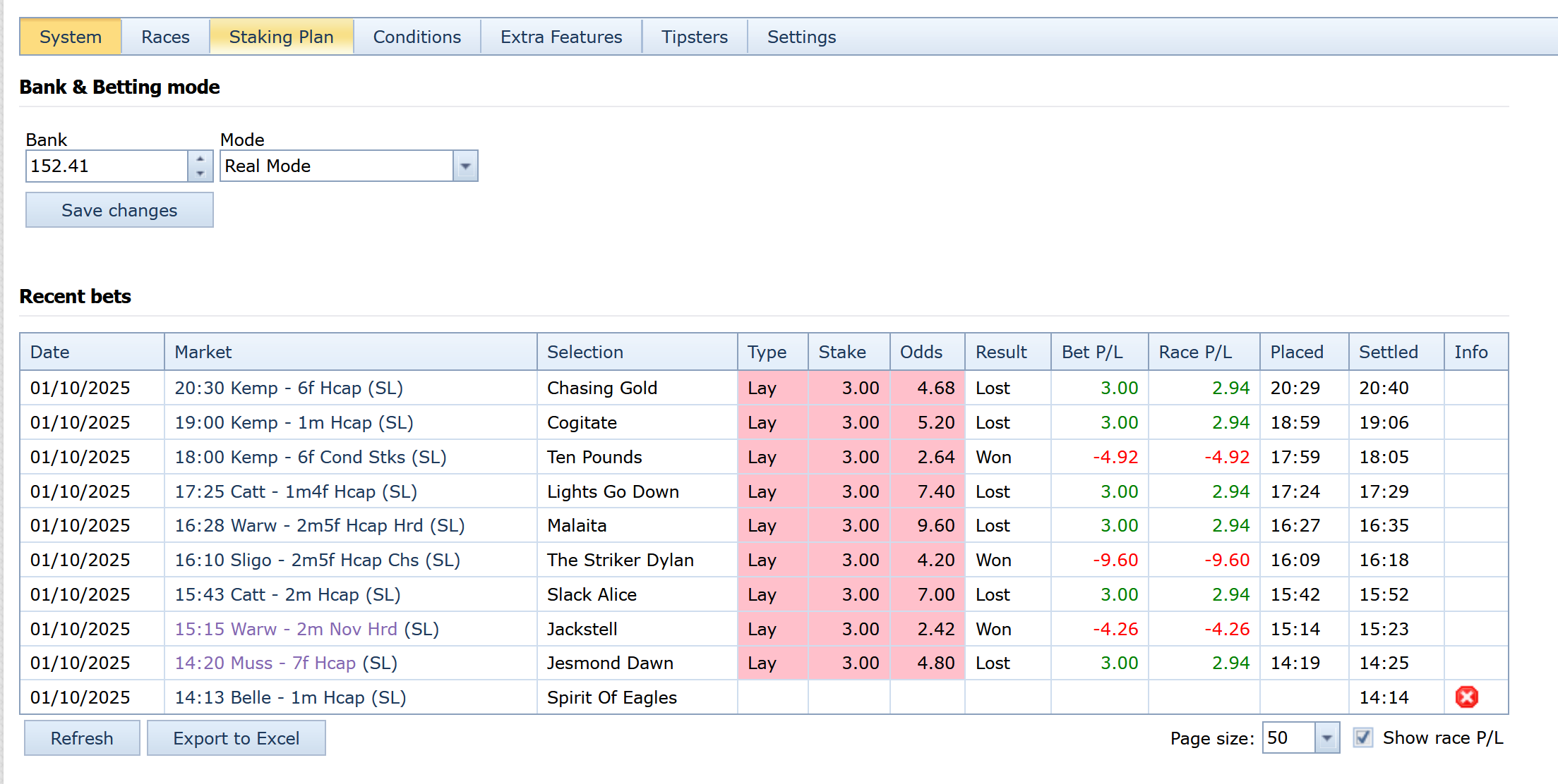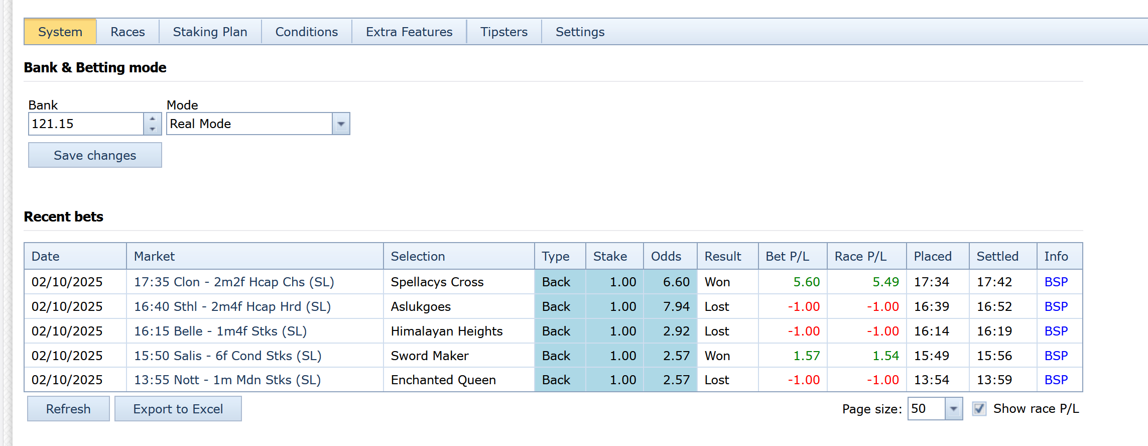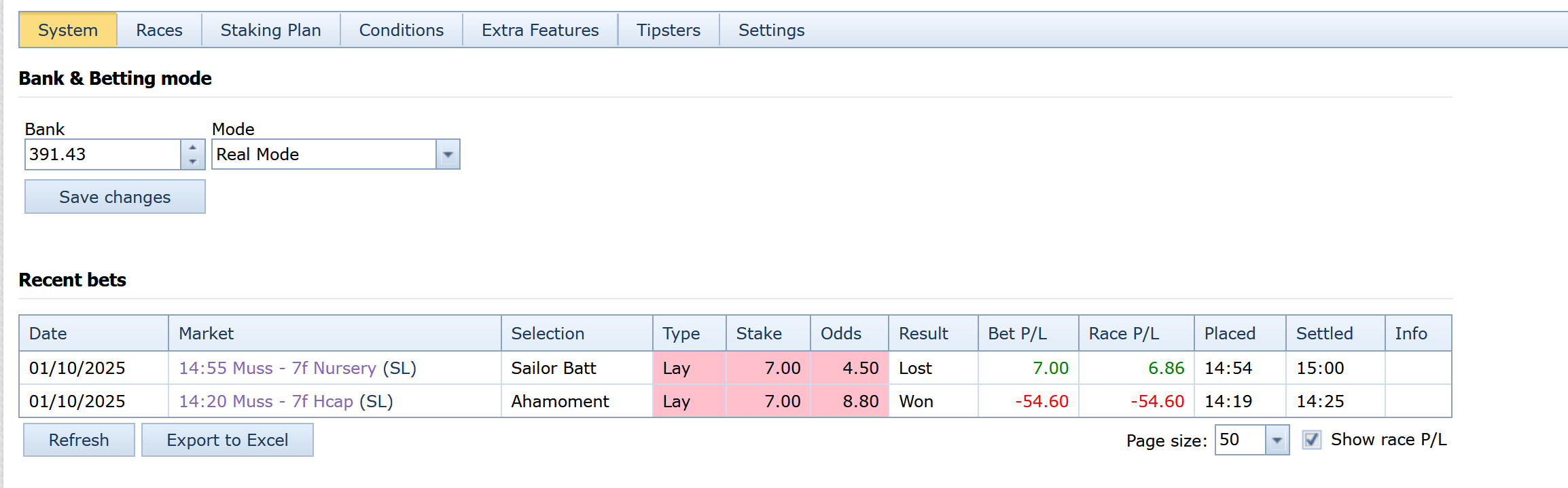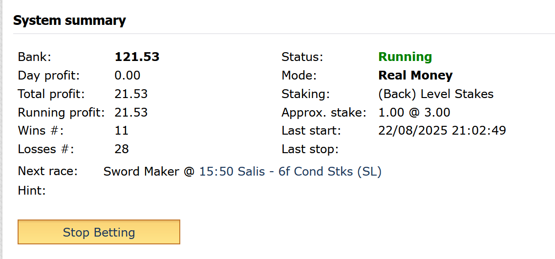 Just small £1 bets to record them but they have had some good results from minimal bets so I turned them to real. Tempting to up the stakes a little especially after another winner today.